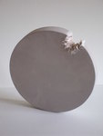 2010Cirkel: doorsnee 25 cm. De hap uit de cirkel is voorzien van dunne porseleinen plaatjes Op een verweerde standaard van oud ijzer.