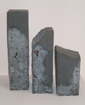 2009Blocks: Deze vorm bestaat uit drie vormen die verschillend van afmeting zijn.. In deze drie vormen zijn de doorlopende structuur en het contrast tussen de gladde en ruwe vlakken het thema.