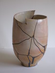 2007Handgevormde vaas uit fijne chamotte met ingebrand koperdraad